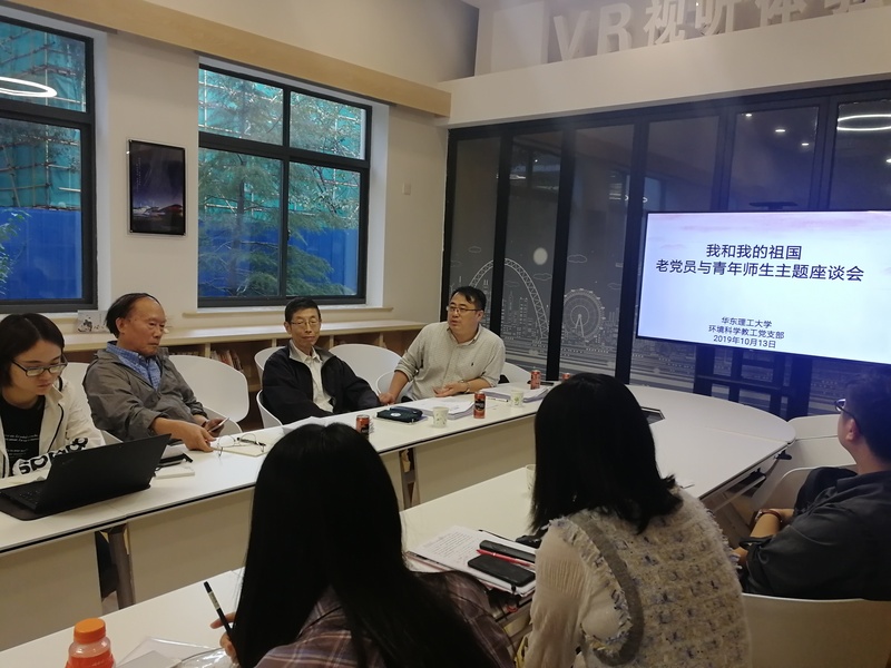 为庆祝新中国成立70周年,结合学院“不忘初心、牢记使命”主题教育,环境科学教工党支部于2019年10月13日在徐汇校区图书馆“明德书房”开展了以“我和我的祖国”为主题的老教授与青年师生交流的主题活动。支部邀请了88858cc永利官网退休教授张大年和中国科学院上海应用物理研究所退休教授张桂林与环境科学党支部大气环境污染与风险管理科研团队的青年教师和研究生分享人生经历、科研经验,传递不忘初心,勇担使命的科技创新精神;活动由公司党委书记修光利主持,支部副书记周磊老师及近50名师生参加了主题活动。