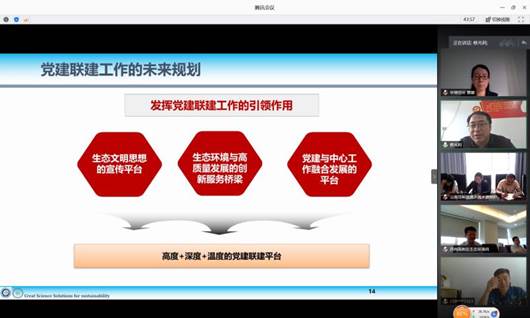 随后,与会单位代表都结合各自工作特点介绍了依托党建联建平台践行习近平生态文明思想的做法、经验和取得的实效。苏州高新区生态环境局党组书记、局长钦纳新谈到党建联建使双方合作更加全面和紧密,分享党建资源,实现了党建、业务“双促进”;云南寻甸县清水海管理局党组书记、局长梁永希望双方能持续发挥党建工作的引领作用,推动环境科技服务和可持续发展理念传播,以高质量的生态环境助力寻甸经济社会高质量发展;上海市徐汇区生态环境局党组书记李侃希望在建设“徐汇区新时代文明实践中心”工作中加强合作,开展生态环境志愿服务;上海市奉贤区生态环境局副局长、党总支书记王惠平详细介绍了奉贤区生态环境局在持续深入开展“党建+”服务工作方面的做法,并希望通过党建联建平台进一步深化各方交流合作,推动环境治理协同服务,推进奉贤区生态文明建设。