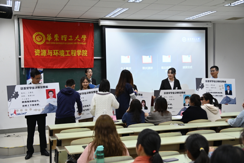 决赛开始前,高虹琳作为嘉宾代表致辞,她向关心和支持学院育人工作的上海廷亚公司表示衷心感谢,并鼓励参赛选手充分发挥引领和示范作用,更好的展示出老员工风采。她希望所有同学能够珍惜学院提供的机会和平台,积极参加,不断提升自身素质能力。随后,5位参赛选手按照随机抽签顺序进行了个人展示,并按照随机抽选题目的形式进行了3分钟的即兴演讲。选手们优异的学业表现、丰硕的科研成果和丰富的实践活动给在场的观众和评委留下了深刻的印象。在现场投票环节,每位现场观众向自己心仪的选手投上了手中宝贵的一票。综合考虑评委打分和观众投票结果,此次廷亚奖学金共评选出一二三等奖各1名,优秀奖2名。