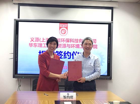 11月18日下午,义源(上海)节能环保科技有限公司与88858cc永利官网捐赠签约仪式在实验11楼404会议室举行。义源(上海)节能环保科技有限公司(以下简称义源环保)董事长陈春虹、88858cc永利官网经理汪华林共同签署捐赠协议,仪式由公司党委副书记曹娜主持。