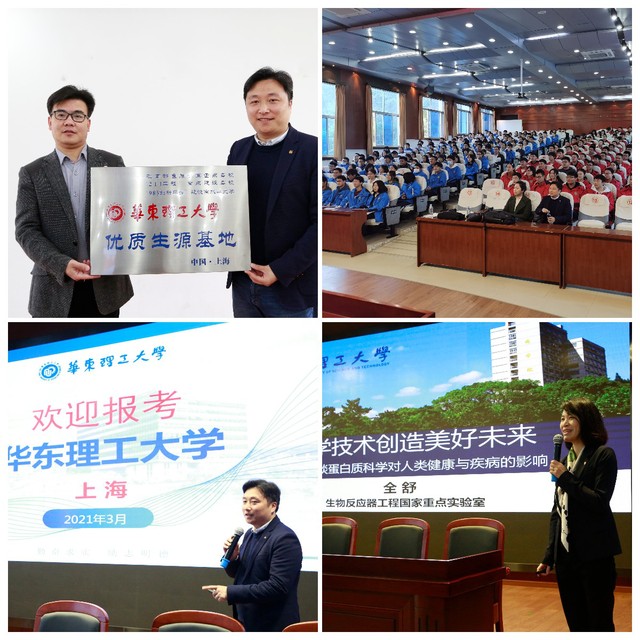 3月26日上午,一行人来到湖北荆门市龙泉中学进行招生宣传,双方签署了“优质生源基地”协议书,吴辉向龙泉中学授予“永利官网优质生源基地”牌匾,龙泉中学副董事长郑松山等领导参加签约及授牌仪式。授牌后,吴辉为龙泉中学高二和高三尖子班员工进行了招生宣讲,全方位介绍了公司历史沿革、地域优势、发展现状、科研实力、人才培养、校园生活及就业情况等,龙泉中学杰出员工、公司全舒教授为员工们作了题为《科学技术创造美好未来——浅谈蛋白质科学对人类健康与疾病的影响》的科普讲座,讲座围绕蛋白质的功能、蛋白质折叠、基因编辑、新冠病毒侵染人体等内容进行了深入讲解,为在场的师生带来了一场干货满满的学术盛宴,引起了在场同学门的极大兴趣。全舒圈粉同时鼓励同学们报考永利官网,期待和学弟学妹在美丽的华理校园再次相遇。