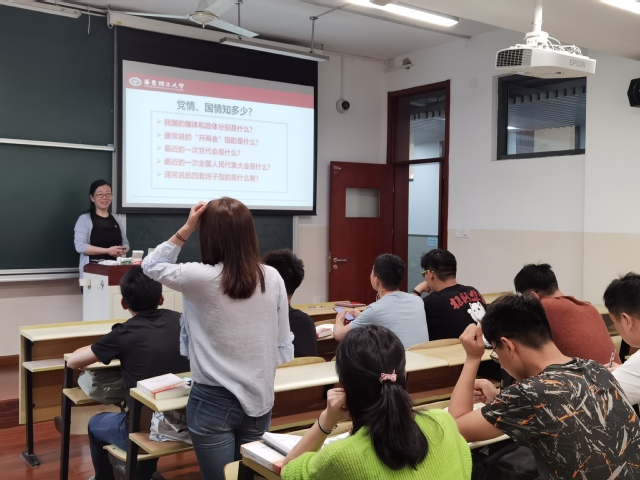 曹娜从国情、党情、国家政治结构等知识点切入,为大家仔细辨析讲解了相关概念。之后着重从中国共产党的发展历程出发,结合党史上的八七会议、遵义会议、中共七大、十一届三中全会、十九届五中全会等重要节点,为积极分子们梳理了历次党代会的内容和作用,内容详实丰富,课堂氛围活跃,互动交流良多。