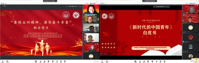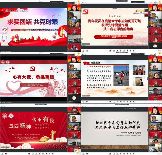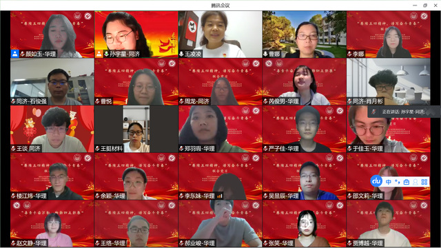 5月4日晚,88858cc永利官网奉贤校区本科生党支部、徐汇校区本科生党支部、同济大学材料科学与工程学院本科生党支部齐聚云端,联合开展了“赓续五四精神,谱写奋斗青春”主题党日活动。公司党委副书记曹娜、同济大学材料科学与工程公司党委副书记王凌凌以及两校三个支部全体党员、发展对象与积极分子在线参加此次活动。
