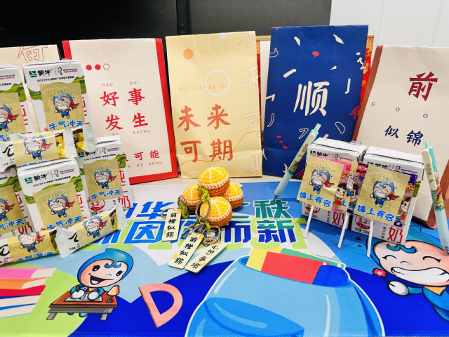 12月13日中午,公司党委副书记曹娜、毕业班辅导员王青以及员工骨干一起将100份“暖心加油包”送到考研学子手中,用特别的方式为即将踏上“战场”的考研学子加油助威。这份“暖心加油包”爱心浓浓,寓意美好,包括“牛气冲天”牛奶、“金榜题名”棒棒糖、“福气满满”德芙、“成功上岸、前程似锦”的挂件以及“逢考必过”锦鲤笔等。