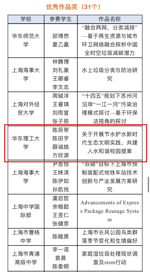 结合公司学科优势,在学校及学院的支持下,院团委积极响应学校号召,动员、组织和指导学院同学们开展科学研究及社会实践,组织遴选、推荐优秀项目参与市级评审,并在过程中予以全方位指导多层次支持。最终,公司《“餐燃一新”关于餐厨垃圾资源化处理的水热炭化耦合厌氧发酵工艺提案》荣获大赛科技发明类三等奖,公司《关于开展节水护水新时代生态文明实践,共建人水和谐校园提案》荣获大赛实践调查类优秀奖。